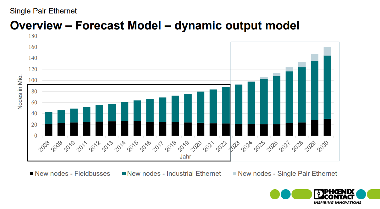 아래 그래프는 시대가 변화하면서 Fieldbus의 감소와 Industrial Ethernet의 증가가 나타나는 흐름을 보여줍니다.